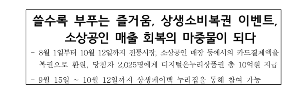 - 9.15(월) ~ 10.12(일)까지 상생페이백 신청 시 상생소비복권 자동 응모