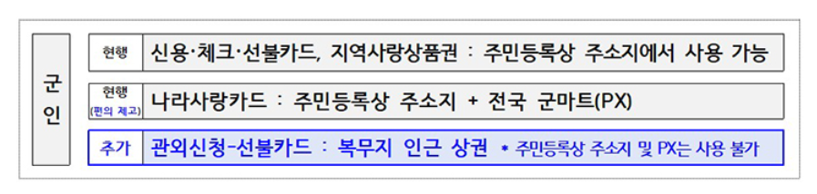 네. 현역복무확인서를 지참하면 복무지 주민센터에서 신청할 수 있습니다. 관외신청으로 지급받으면 주소지에서는 사용 불가합니다. 군부대 사정에 따라 담당자가 직접 방문해 대리 신청도 가능합니다.