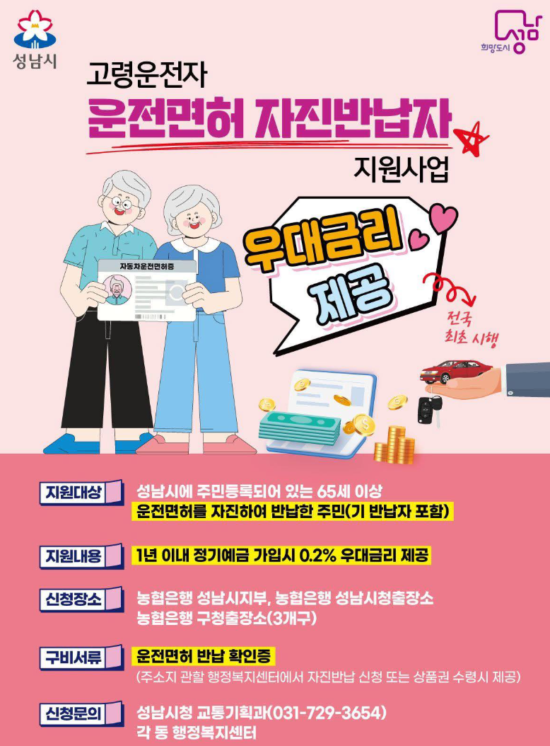 A. 만 65세 이상 운전자가 면허를 반납하면 신청할 수 있지만, 지자체별로 예산 한도와 선착순 제한이 있습니다. 거주지 지자체 공지사항을 꼭 확인해야 합니다.