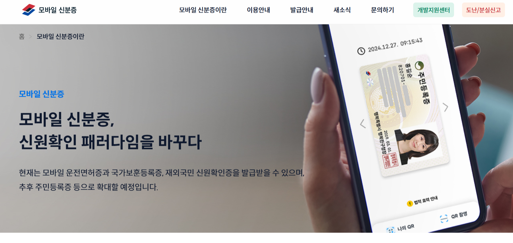 모바일 신분증은 정부가 발급하는 공식 디지털 신분증으로, 주민등록증·운전면허증과 동일한 법적 효력을 갖고 있어 공공기관, 금융기관, 편의점, 병원은 물론 온라인 비대면 서비스에서도 신원 확인 수단으로 활용할 수 있습니다.